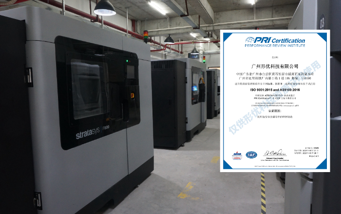 作为 Stratasys 中国核心代理商及亚太地区领先的可测试 3D 打印服务提供商,广州形优科技有限公司(形优三维)已通过 ISO 9001:2015 及 AS9100:2016 航空航天质量管理体系认证,专注于民用航空非金属零件的增材制造服务。依托 Stratasys Fortus 450、F900 等先进设备与技术支持,形优三维具备丰富的航空级 3D 打印经验,为国内航空航天行业的持续发展提供合规、高效的技术支撑。