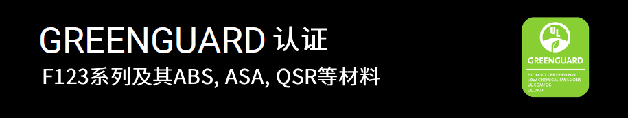◆认证覆盖 ABS、ASA、FDM Nylon-CF10、SUP4000B 及 QSR Support™等多种常用材料组合,均通过 GREENGUARD® 排放检测;